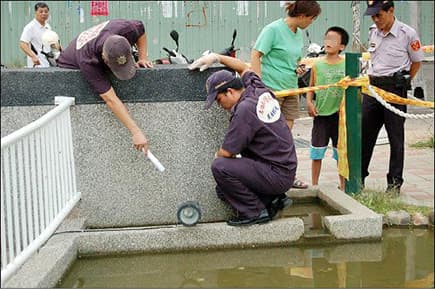 警方調查,中正國小六年級許姓男童,昨午和小四、小三的兩個弟弟及一名楊姓男童,在中正國小校門旁深約30公分的水池嬉戲,並拿吐司餵池裡的魚。